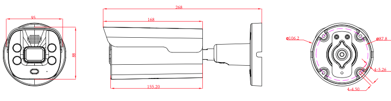 Ống kính tùy chọn: 2.8mm / 3.6mm / 6mm.