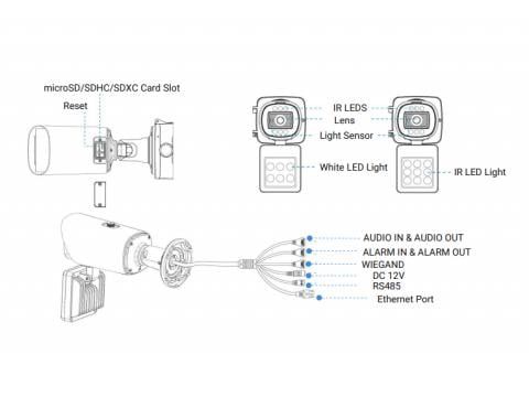 Đèn bổ sung tùy chọn: LED trắng hoặc LED hồng ngoại (IR 850nm, tùy chọn 740nm) với tầm chiếu sáng tới 180m.